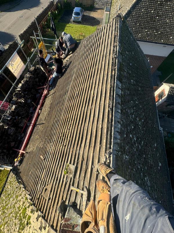 The existing roof coverings were worn and uneven, with old felt and battens that no longer met modern standards. There were visible signs of deterioration, and the roof required a complete overhaul to prevent future issues and restore confidence in its weather resistance.